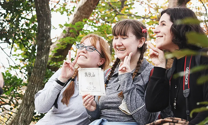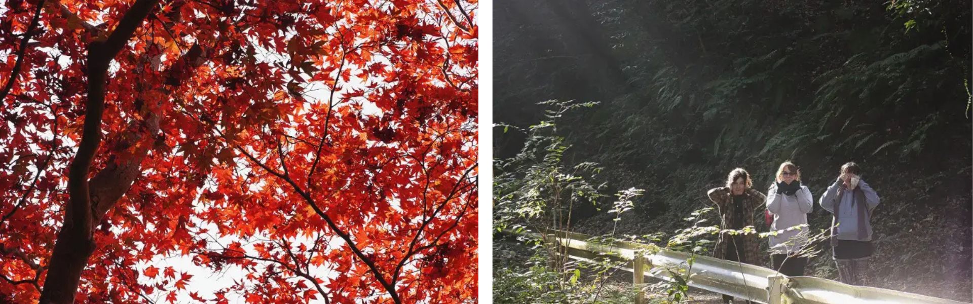 いよいよハイキングの時間です。私たちは、自然歩道の一部として整備されている「田淵学園寺モデルコース」に挑戦することにしました。このコースは学園寺の近くから始まり、田淵山の山頂まで標高456メートルに達します。山の尾根を通る道は全長5.5キロメートルです。