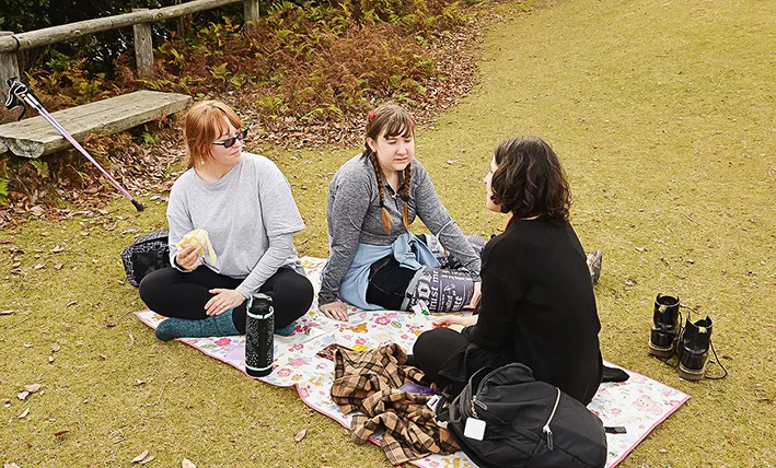 下山を始める前に、私たちは広場で少しお茶休憩をしました。お気に入りのお菓子をみんなで分け合いながら、美しい街の景色を楽しみました。