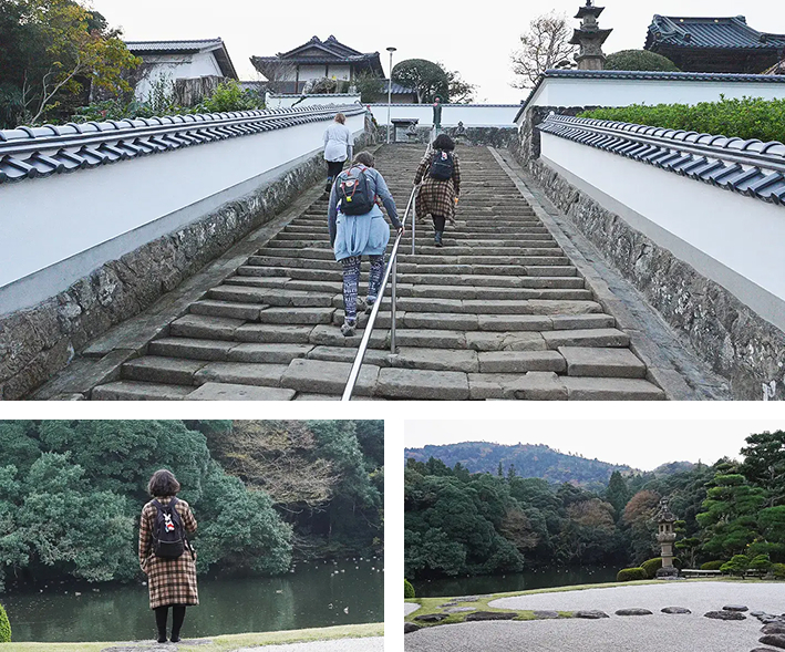 この静かな庭園を、先ほど登った山を背景に眺めることは、私たちにとって特別な一日の締めくくりとなりました。