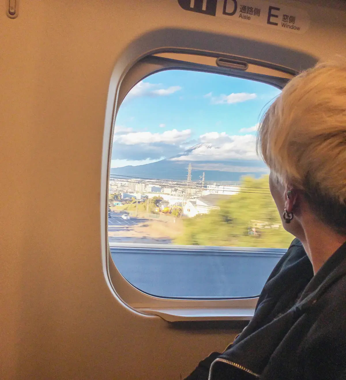 私は快適な窓側の席に座り、スマホを充電しながら美味しい駅弁を楽しみました。旅が始まって約30分後、運よく窓から富士山を眺めることができました。想像通りの美しさでした。食事も景色も素晴らしかったです。