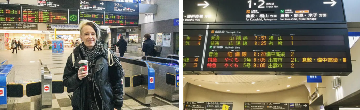 岡山に到着したら、次の出雲行きの電車に乗る前にどうしてもやりたいことが二つありました。一つは、岡山駅のお土産屋さんを見て回ること。そしてもう一つは、駅の外にある有名な桃太郎像の前でセルフィーを撮ることです。