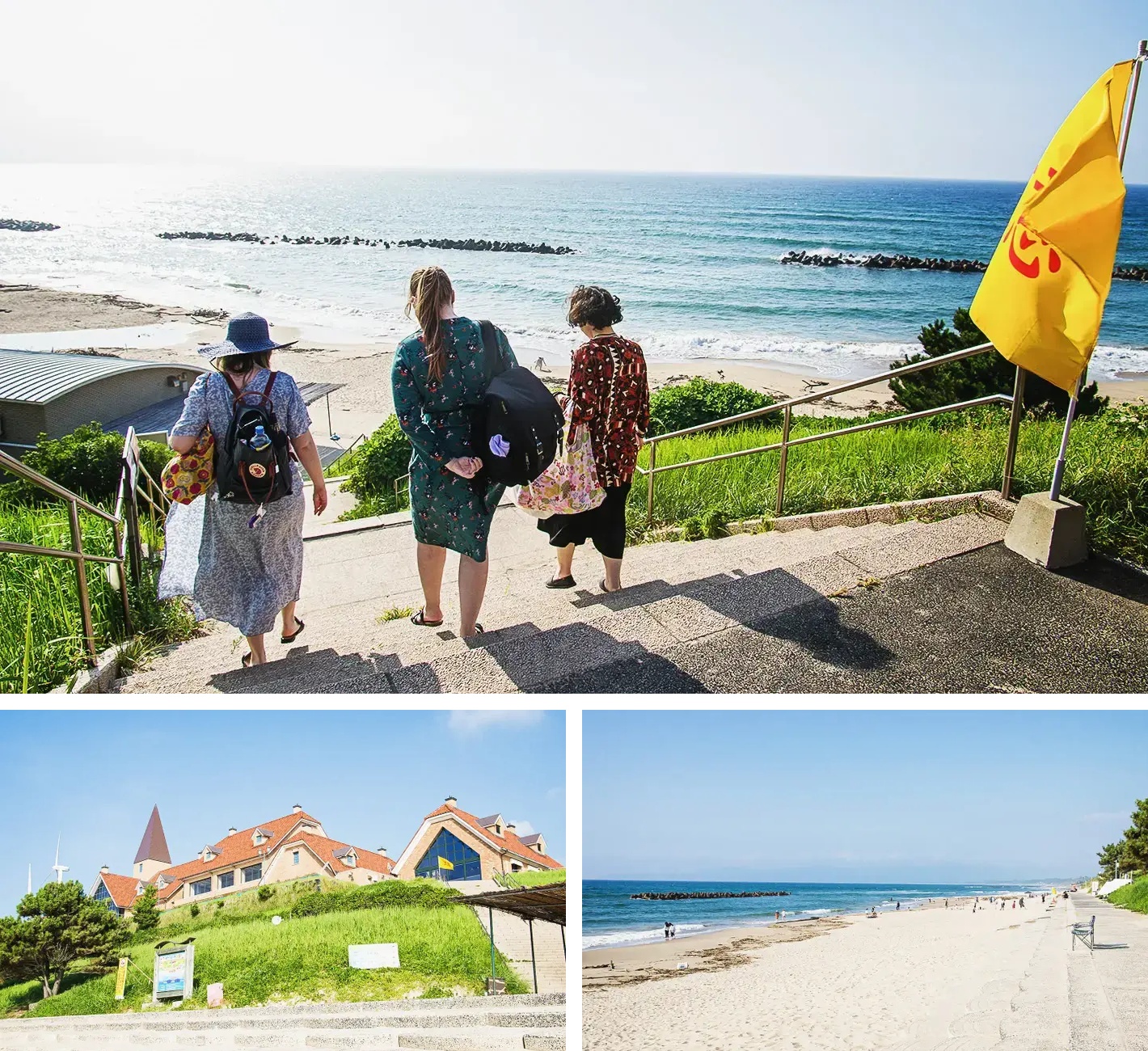 次に、夏の日帰り旅行の定番、ビーチでの遊びです!無料で利用できる更衣室があり、そこで水着に着替えて、日焼け止めをたっぷり塗りました。そして、いよいよ海岸へ向かいました。この時、すでに午後遅くでしたが、太陽はまだ高く輝いていました。