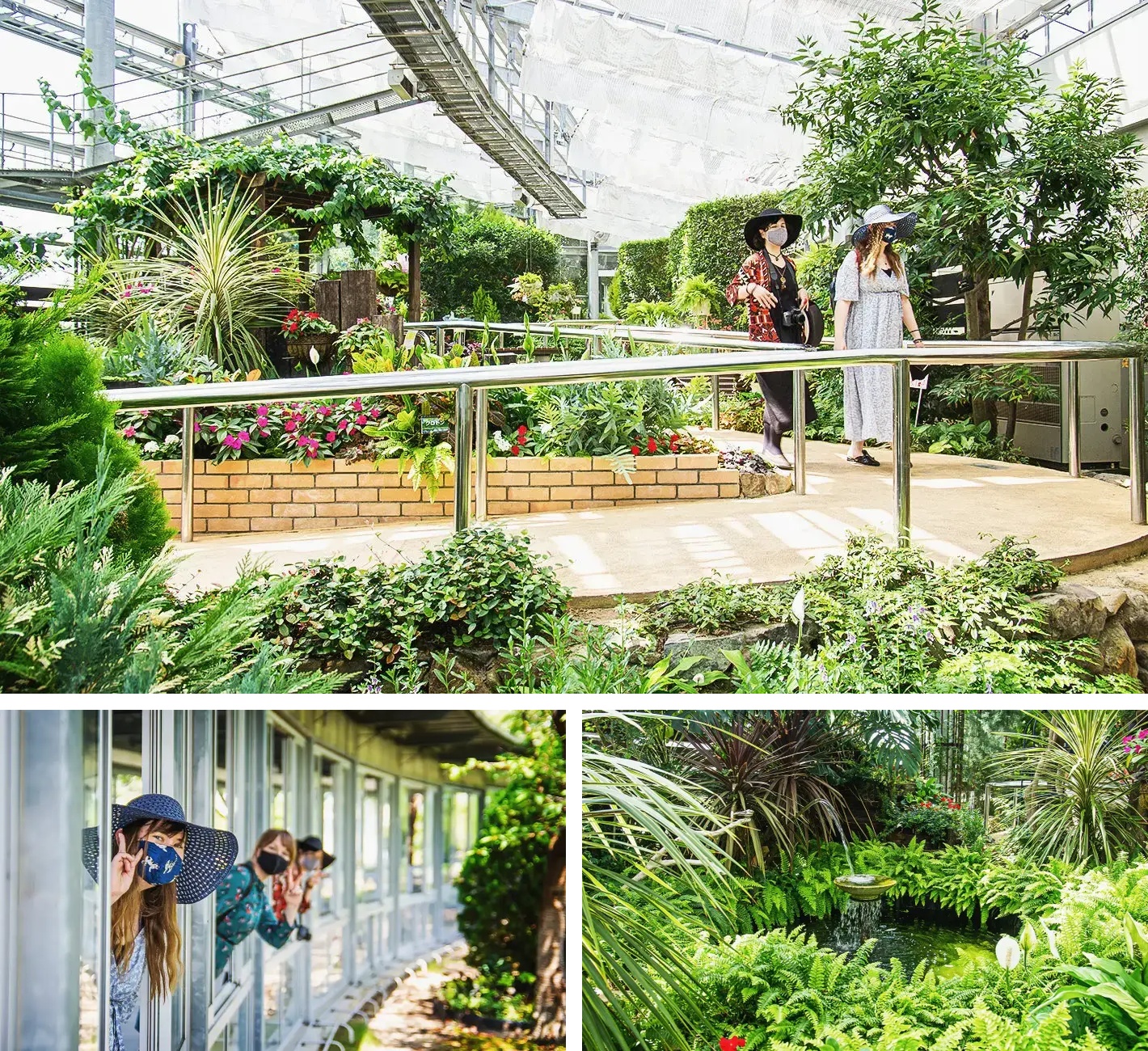 私たちは再び屋根付きの道に戻り、その先にあるガラスの建物にたどり着きました。そこには地元の季節の花々が特別に展示されています。中は冷房がとても効いていて、ゆっくりと歩きながらその涼しさを存分に楽しむことができました。