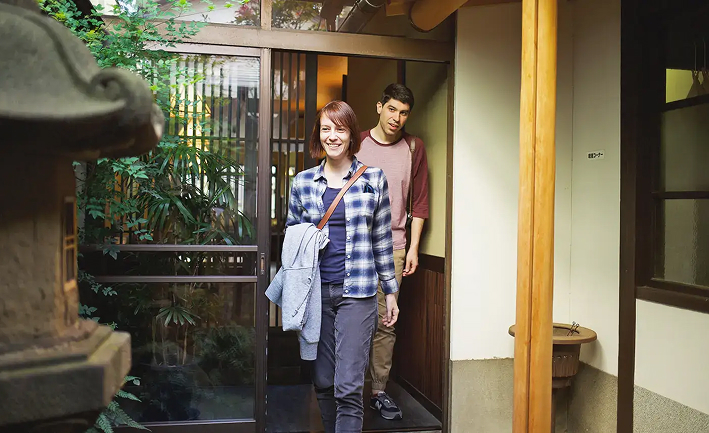 引き戸を通って奥に進むと、心地よくプライベートな空間で出雲そばを楽しむことができます。そばをより一層楽しむために、スタッフに頼めば正しい食べ方のガイドをもらうこともできますよ。