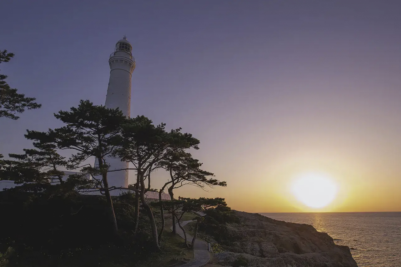 日御碕灯台は1903年に完成し、今もなお日本海を行き交う船の安全を見守っています。すぐ近くにある日御碕神社は鮮やかな朱塗りの社殿が特徴で、国の重要文化財に指定されています。