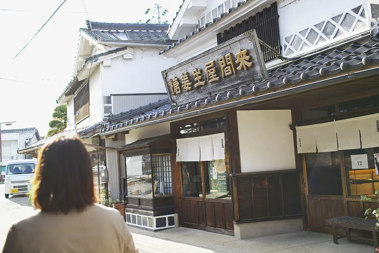 生姜糖や酒蔵、醤油屋など、代々続くお店を訪れることができます。このエリアには、本石橋邸という美しい日本庭園を持つ邸宅もあります。
