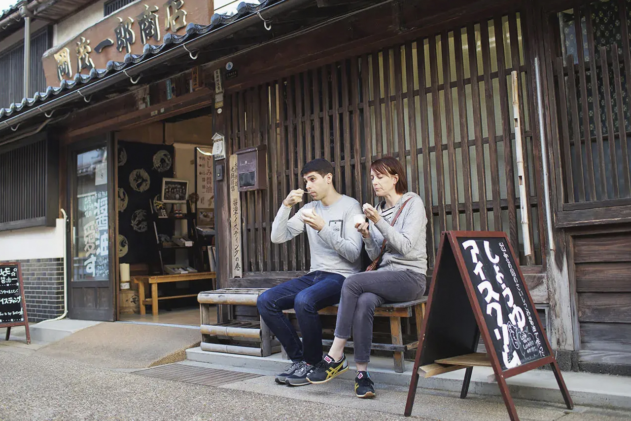 多くの歴史的な建物には、19世紀から続く酒蔵や醤油蔵が今も残っています。お酒好きの方には、さまざまな種類の日本酒を試すことができ、醤油風味のお菓子もたくさん楽しめますよ。ここでしか味わえない醤油アイスクリームも、ぜひ試してみてください。